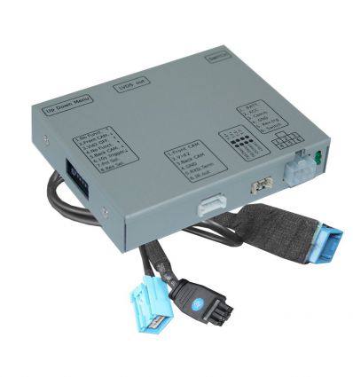 Video inserter compatible with Jaguar vehicles with Touchscreen navigation system version 1.1 (Menu 2). For connection of a front-, rear-view camera and another video source.