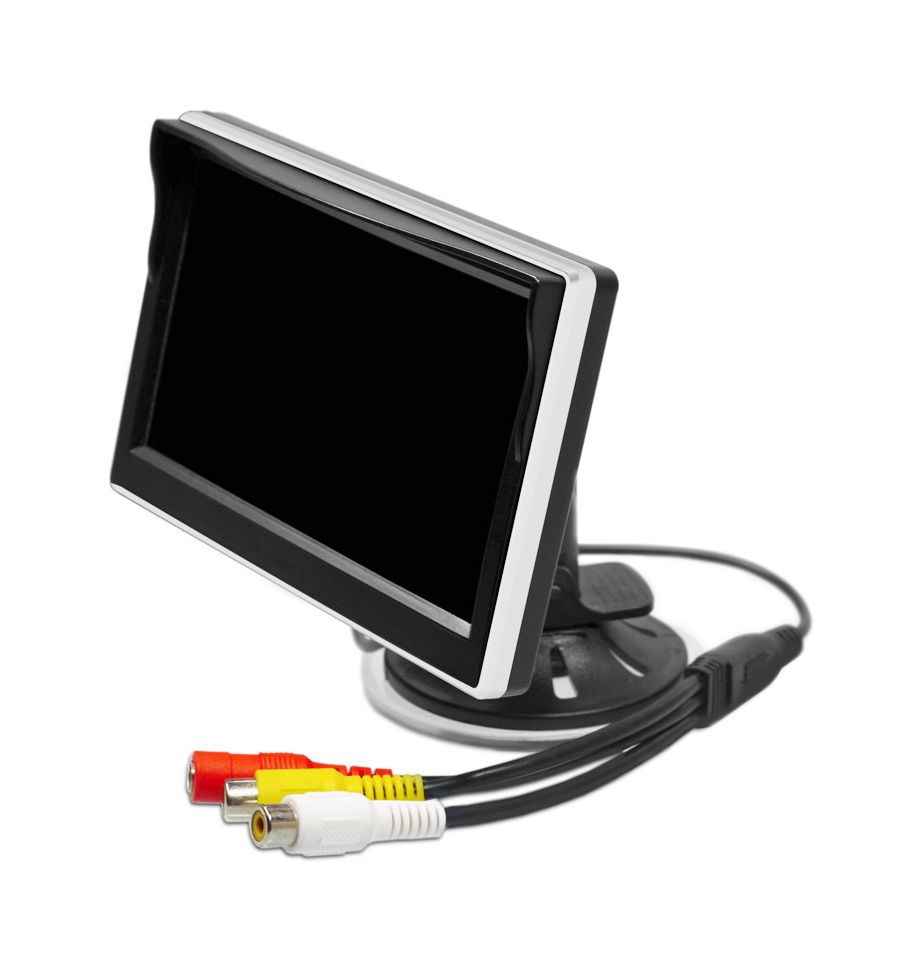 Monitor da 5" formato 16:9 con staffa di supporto,alimentazione 12V, ideale in combinazione con telecamere di retromarcia. 1 Ingresso Video, 1 Ingresso telecamera, compatibile PAL/NTSC