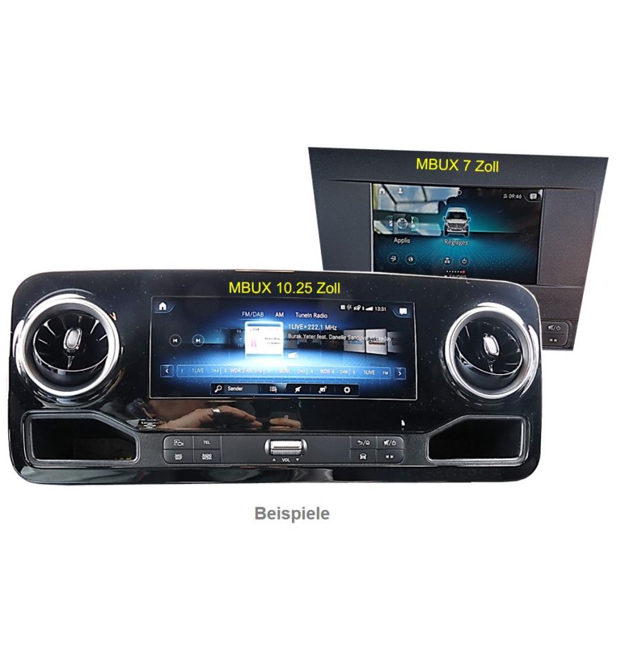 | A-class (W177) from 05/2018, B-class (W247) from 12/2018, Citan (W420) from 10/2021, CLA coupe (C118) from 03/2019, CLA shooting brake (X118) from 07/2019, CLS coupe (C257) from 07/2020-, E-class (W213) from 06/2020 til 08/2023, E-class T-model (S213) from 06/2020 til 08/2023, E-class coupe (C238) from 06/2020 til 10/2023, E-class convertible (A238) from 06/2020 til 10/2023, EQA SUV (H243) from 02/2021, EQB SUV (X243) from 11/2021, EQC (N293) from 05/2019 til 05/2023, EQT (W420) from 05/2023, EQV (W447) from 10/2020, GLA (H247) from 02/2020, GLB (X247) from 09/2019, GLC coupe (C253) about 05/2019 til 03/2023, GLC SUV (X253) about 05/2019 til 07/2022, GLE coupe (C167) from 11/2019, GLE SUV (V167) from 10/2018, GLS (X167) from 04/2019, GT AMG 4door (X290) from 06/2020, Sprinter (W907/W910) from 06/2018, T-class (W420) from 2022, V-class (W447) from 03/2020 | Comand Online NTG6/MBUX with 7inch, 10.25inch or 12inch monitor |